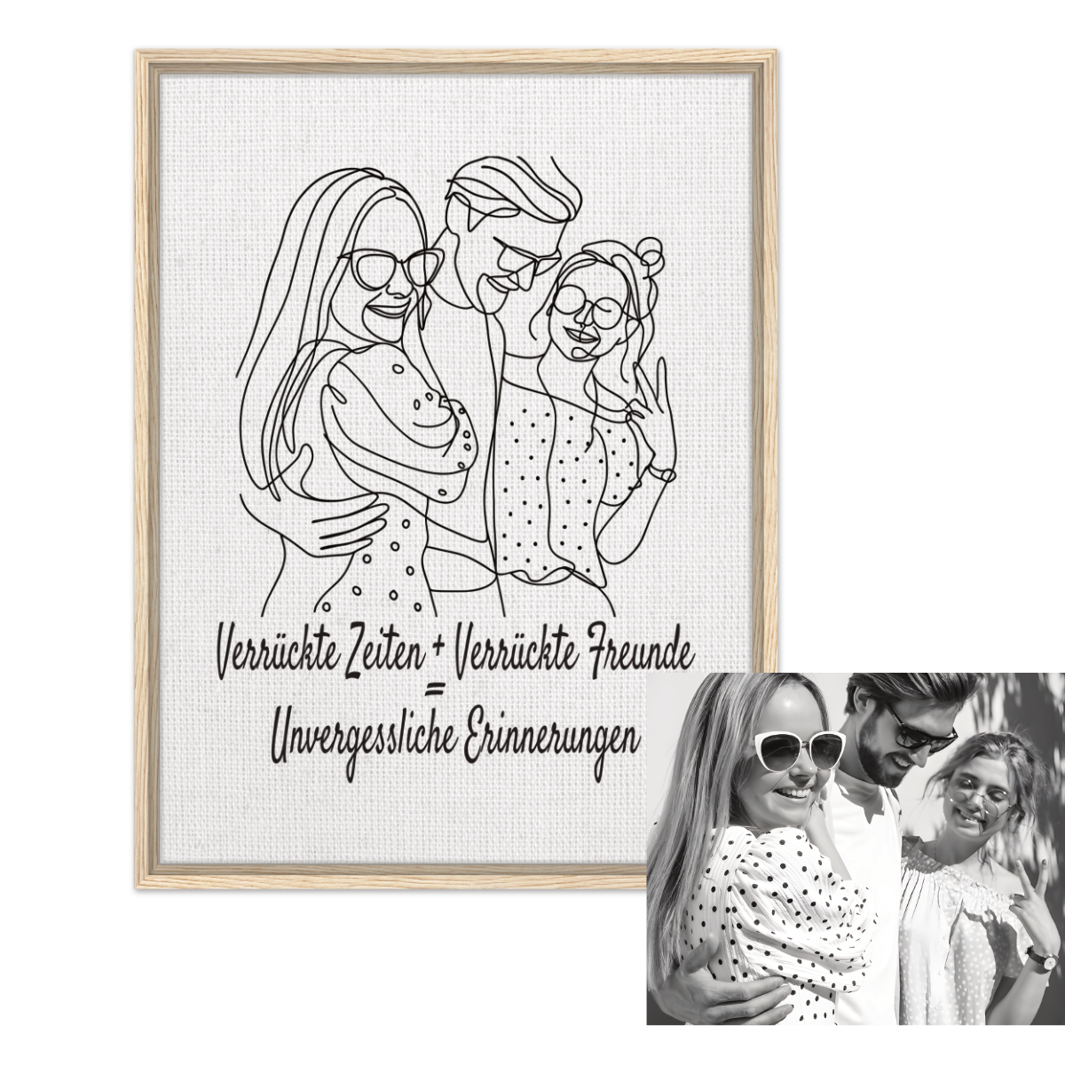 Verwandle deine Lieblingsmomente in ein einzigartiges Kunstwerk – mit unseren personalisierbaren One-Line-Art Leinwänden. Jedes Design wird von Hand aus deinem Foto erstellt und anschließend auf hochwertige Leinwand gedruckt. Der elegante Rahmen verleiht deinem Bild zeitlose Ästhetik und macht es zum stilvollen Highlight für dein Zuhause.
